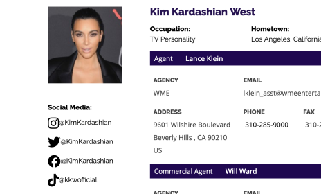 celebrities, agents, representatives, and agencies.
